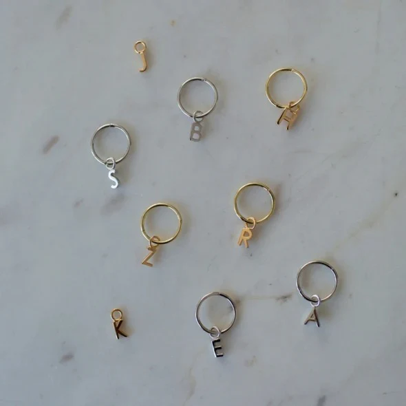 letter pendant: approx. 9mm (each letter has unique shape and measurement) 14 kt gold plated brass